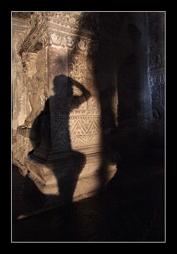 當走進艾羅拉石窟,時光彷彿一下子倒流千多年,回到古印度,接觸古印度建築文化,感受這個文明古國的寶貴遺產。在行程末段,才走到凱拉薩神廟,那宏偉雄奇中帶著精雕細琢的建築藝術,粗豪之中見精緻,實在是「相逢恨晚」,後悔在早段行程時耽擱久了,使得在這個精華景點中行色匆匆,未能盡情拍攝。